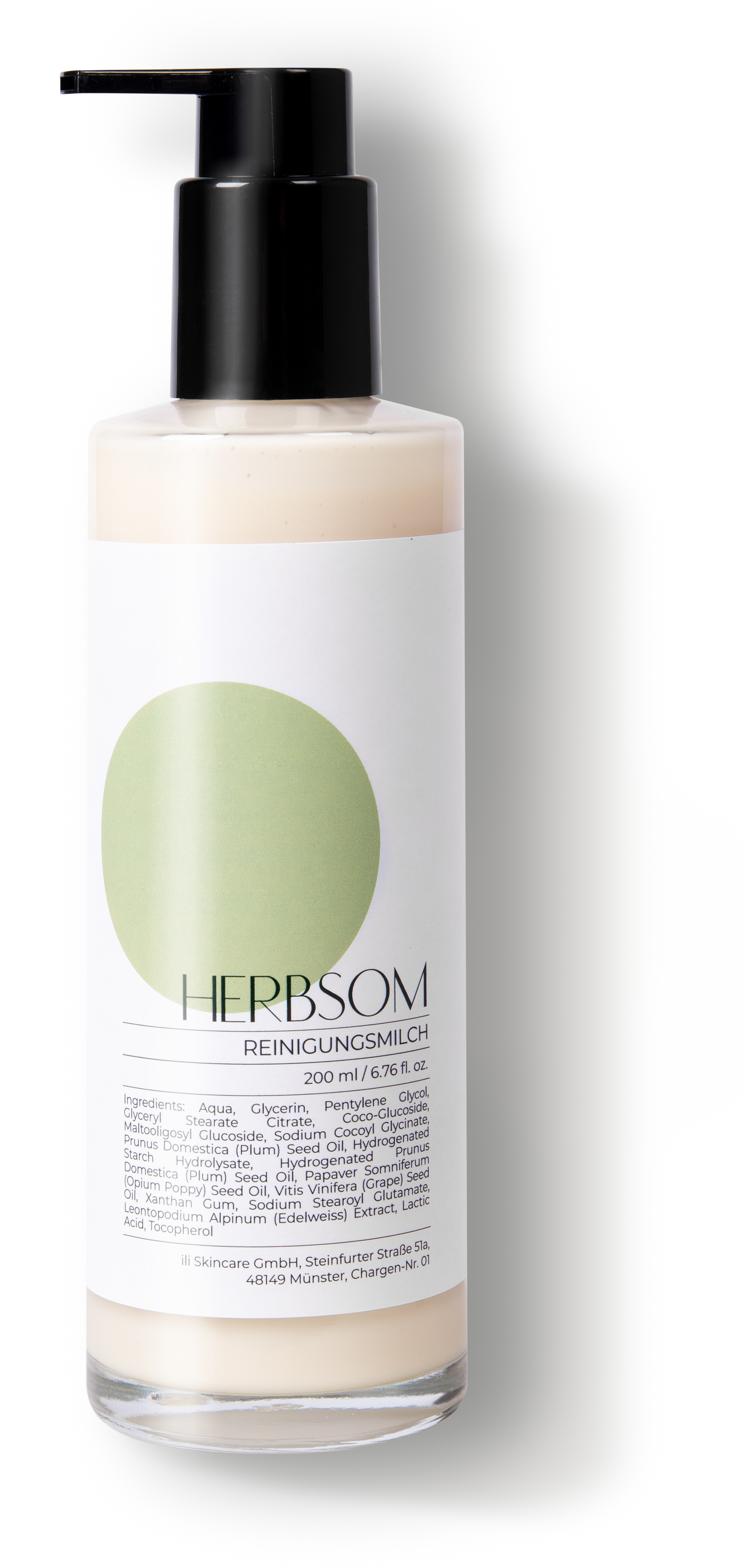 Im Anschluss empfiehlt sich eine feuchtigkeitsspendende Pflege mit Antioxidantien oder regenerierenden Wirkstoffen. Die Herbsom Reinigungsmilch ist dabei nicht nur die Grundlage für ein gesundes Hautbild – sie ist auch ideal als milde Reinigung bei sensibler, gereizter oder geschwächter Hautbarriere.